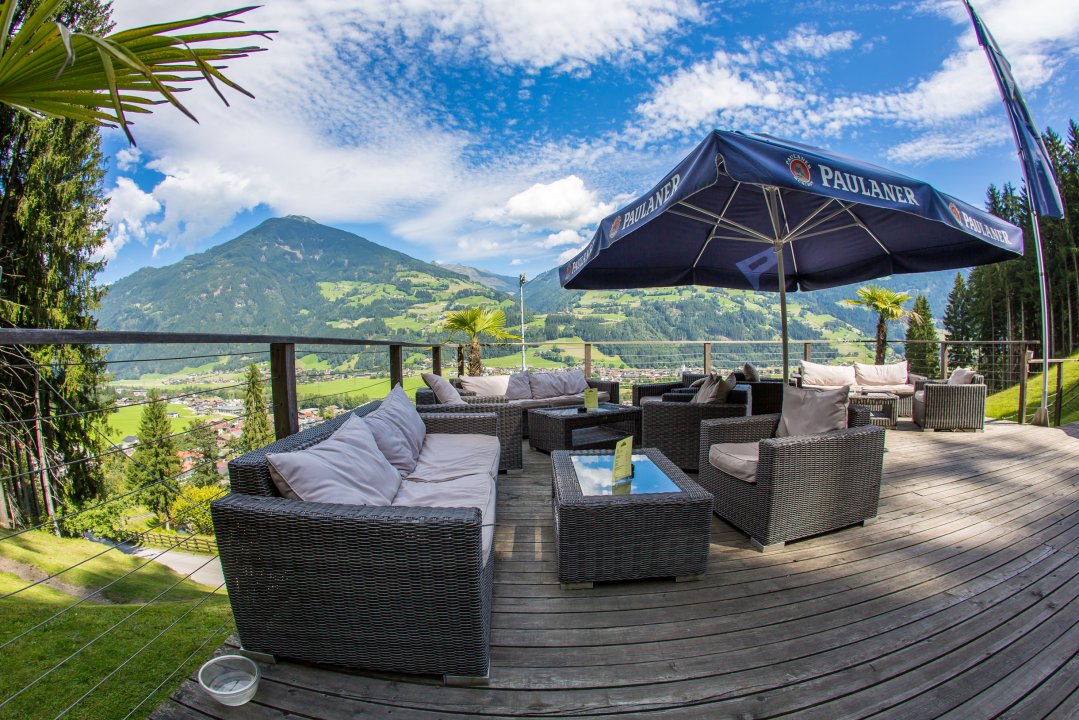 Machen Sie einen kurzen Spaziergang und entdecken Sie meinen einzigartigen Logenplatz direkt über dem Alpin Family Resort Seetal. Es erwarten Sie nicht nur verlockende Erfrischungen und eine grandiose Aussicht über die Dörfer des Zillertales, sondern auch der spektakuläre Hochseilgarten des Outdoorcenter Zillertal.