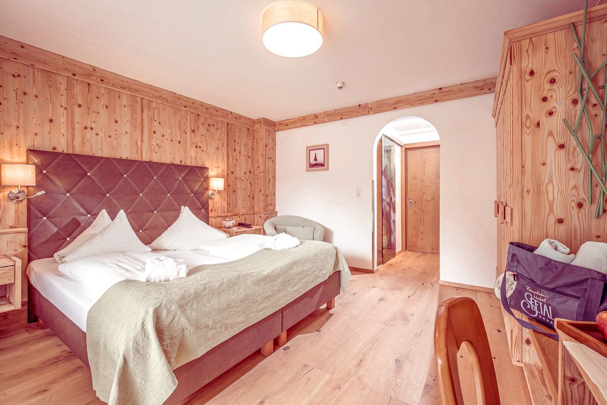 20-25m², Schlafzimmer mit Sitzgelegenheit, TV, Badezimmer, Badewanne/Dusche, Waschtisch, WC getrennt, Föhn, Safe, ein bis zwei Zusatzbetten für weitere Personen (Kinder) auf Anfrage, Süd-oder Nordseite, Balkon;