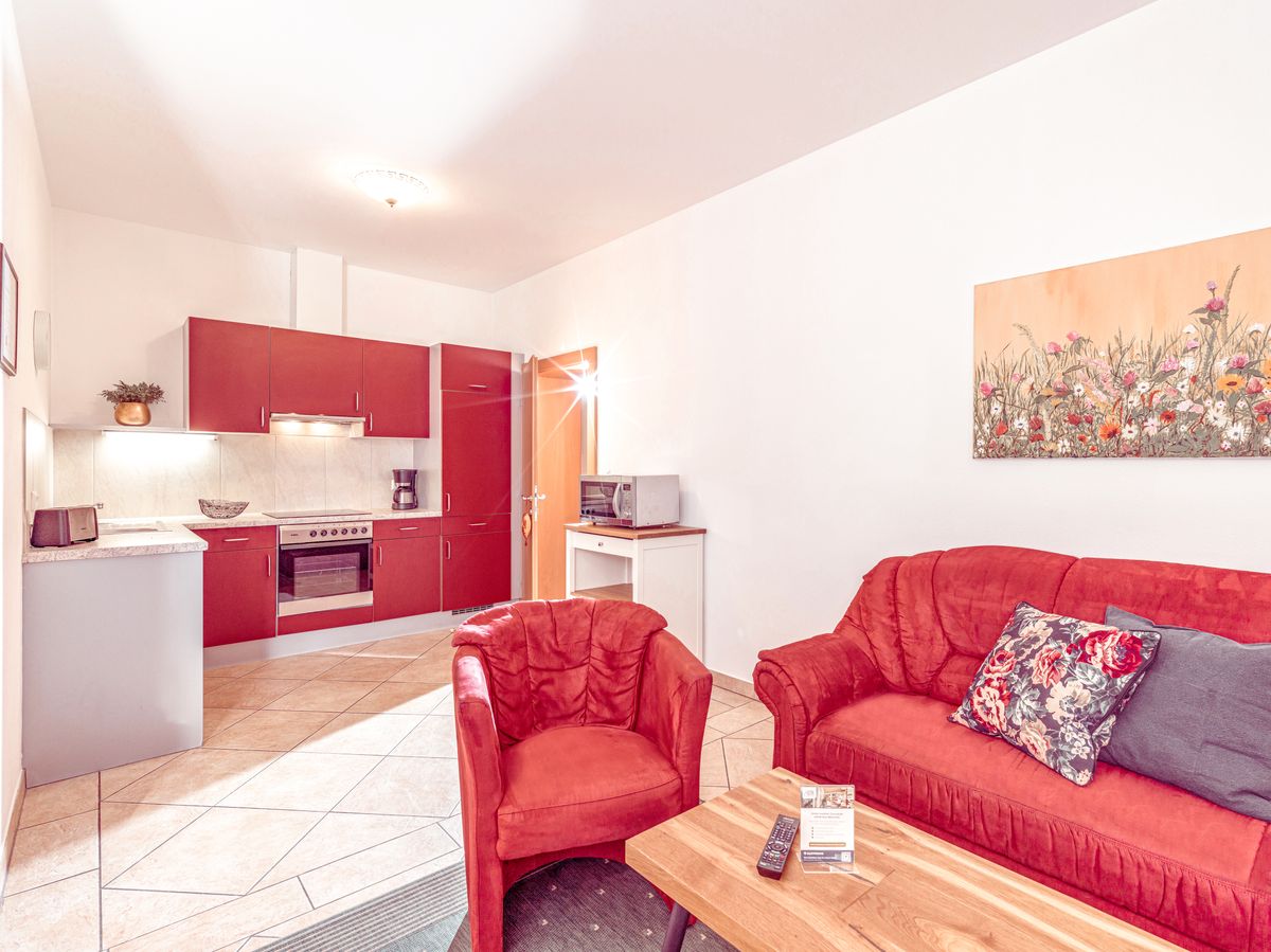 • 1 voll ausgestattete Wohnküche mit Herd, Backofen, Dunstabzug, Kühlschrank mit Gefrierfach, Geschirrspülmaschine, Toaster, Wasserkocher, Kaffeemaschine, TV uvm. Ausziehcouch möglich.