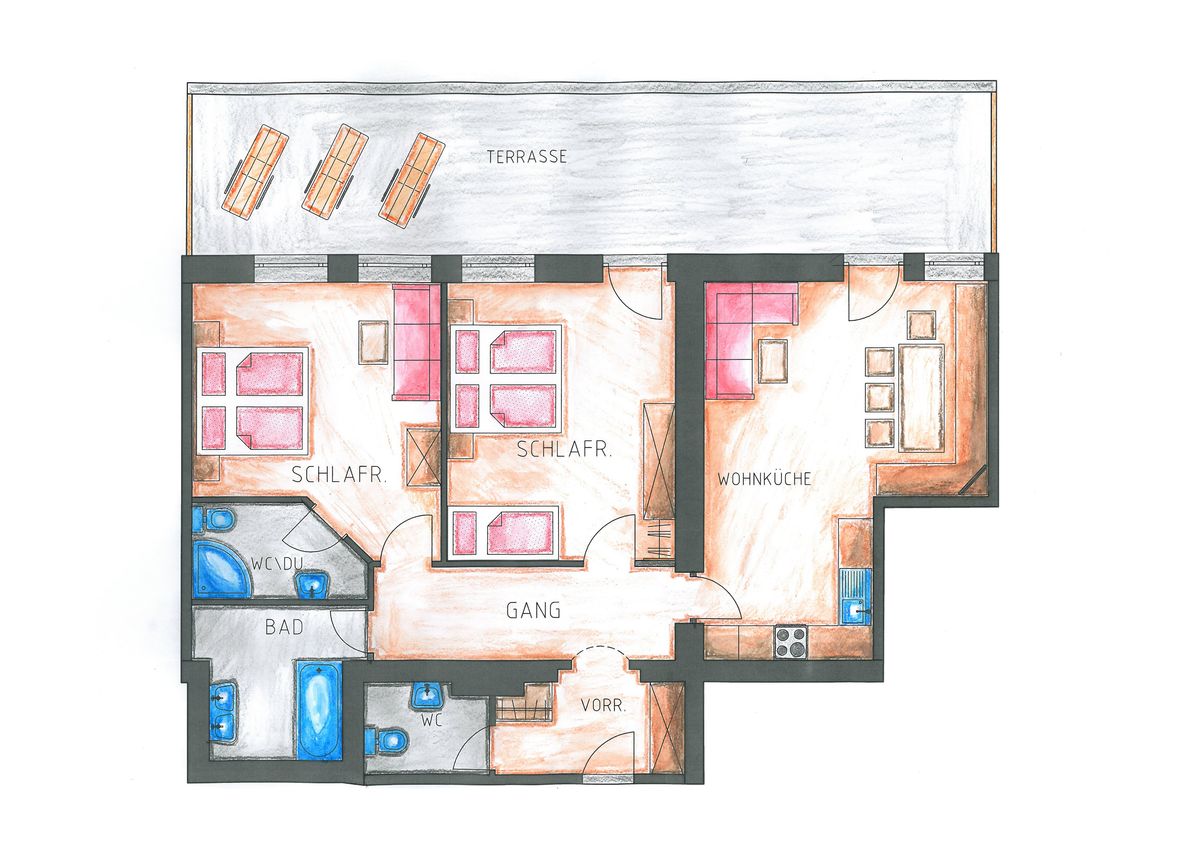 * Bei den Abbildungen und Skizzen der Zimmer handelt es sich um Wohnbeispiele.