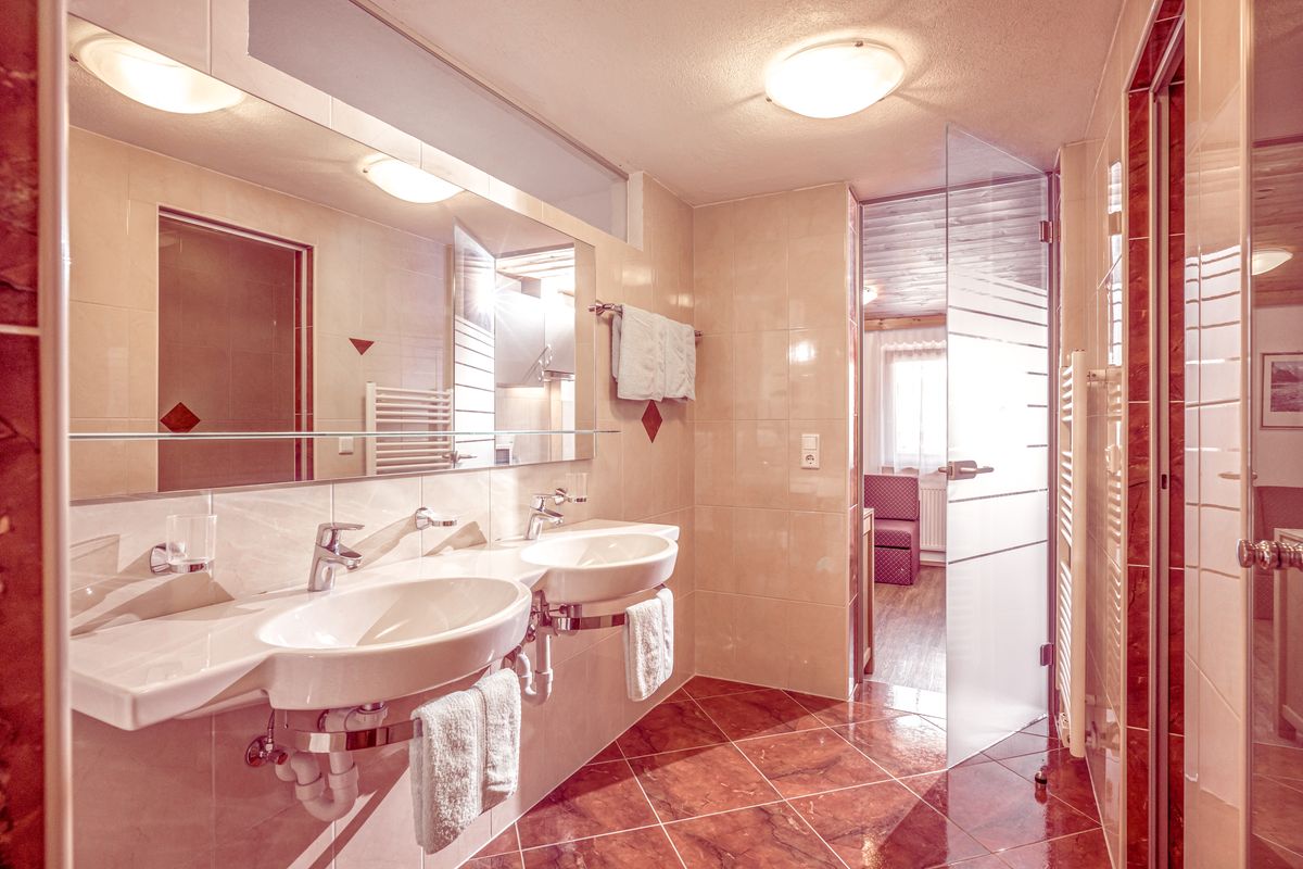 •1 Badezimmer/ Dusche, Doppelwaschtisch, 1 WC separat,