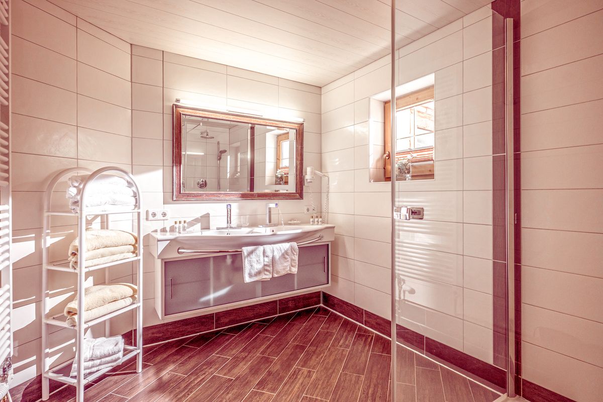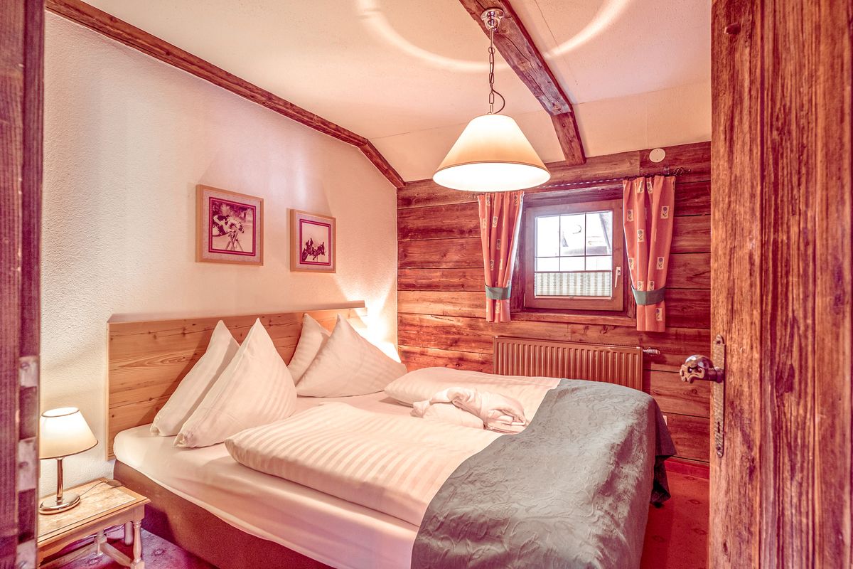 60m², une chambre avec lit double, deux chambres supplémentaires dont l'une avec lit superposé, salle de bain moderne, douche, double vasque avec mitigeurs à effets spéciaux, miroir, WC séparé, sèche-cheveux, confortable coin salon avec banc d'angle, poêle traditionnel, télévision, coffre-fort, balcon avec vue à couper le souffle