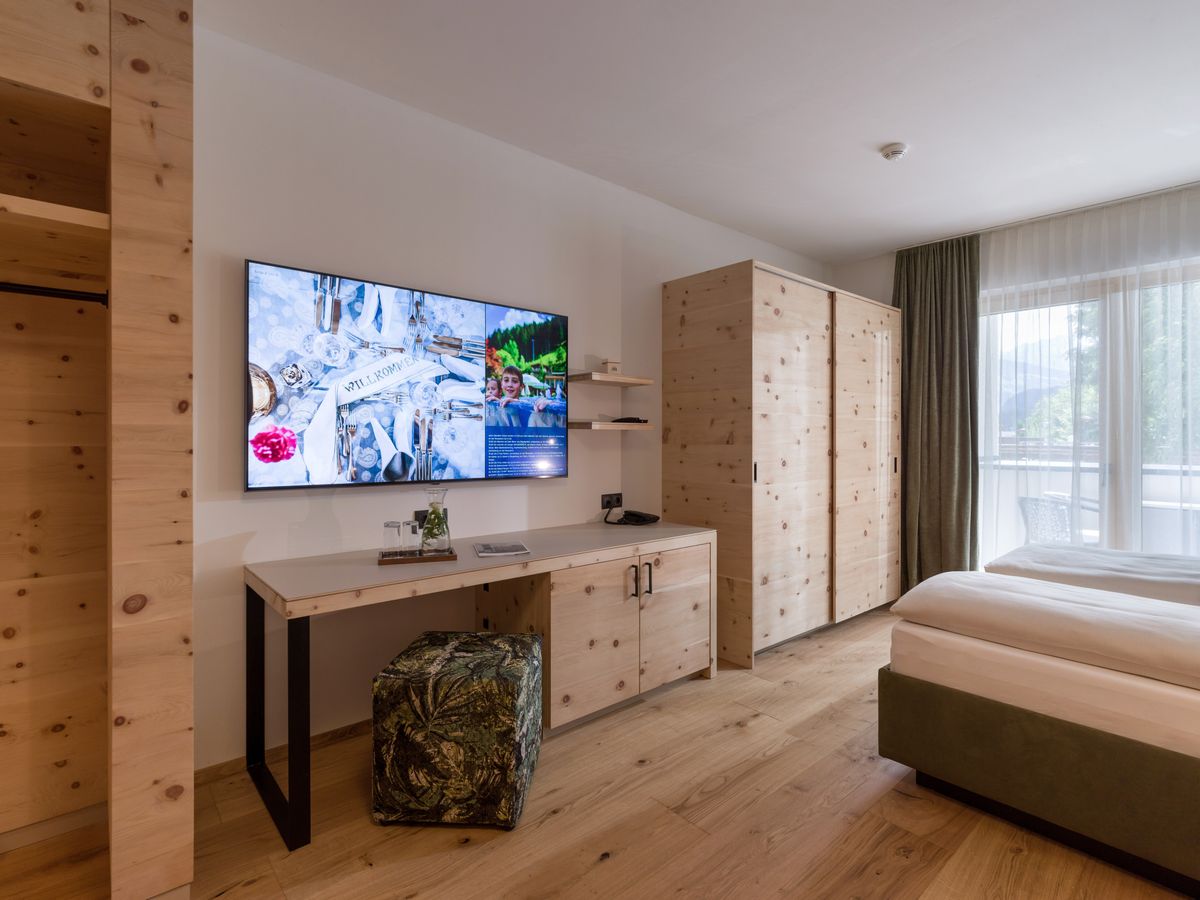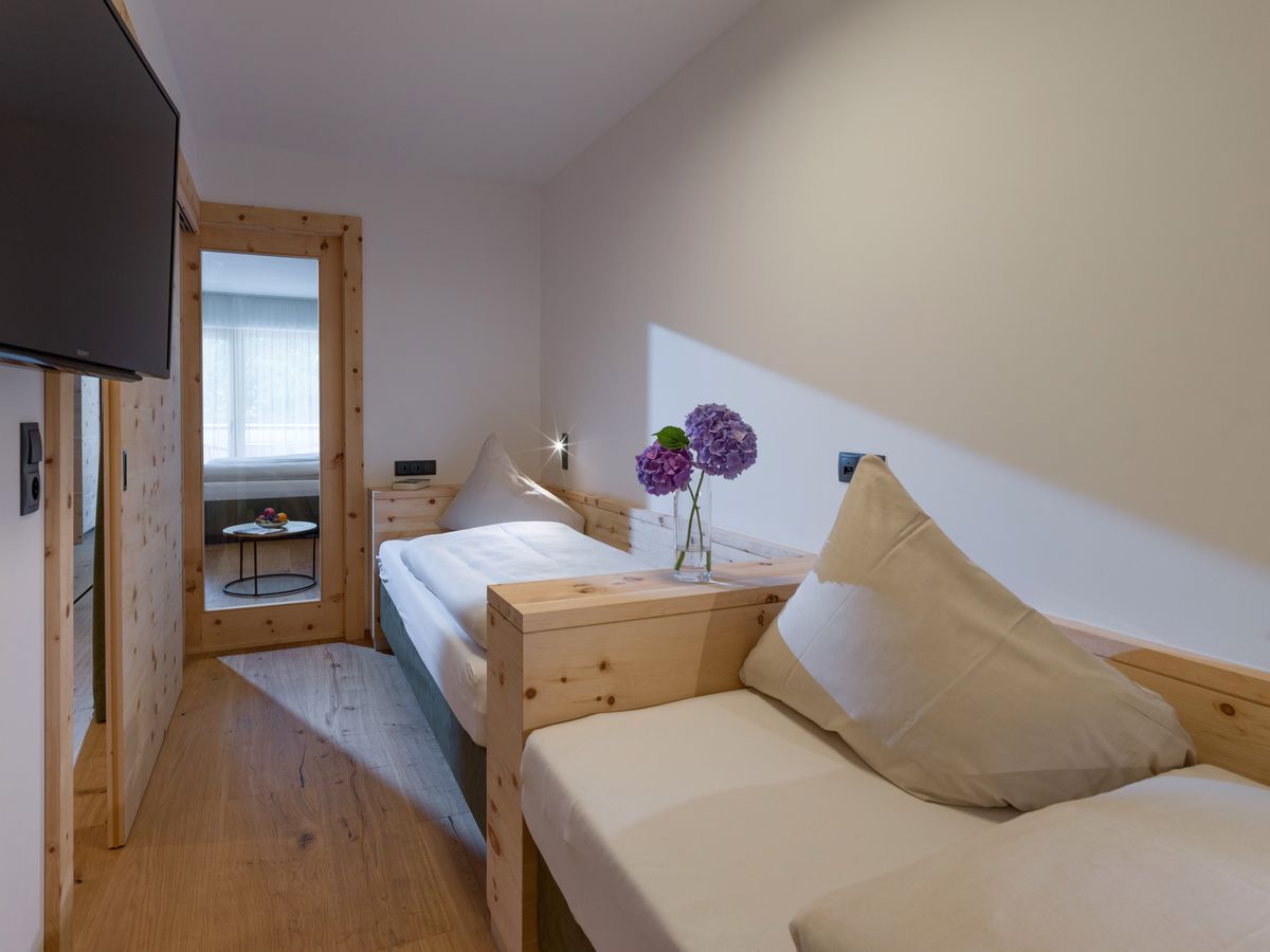 50 m², salle de bains avec biagnoire et douche, WC séparés avec lavabo, sèche-cheveux, chambre d'enfants séparée avec lits single, coffre-fort, 2 TV, téléphone, climatisation, balcon côté soleil